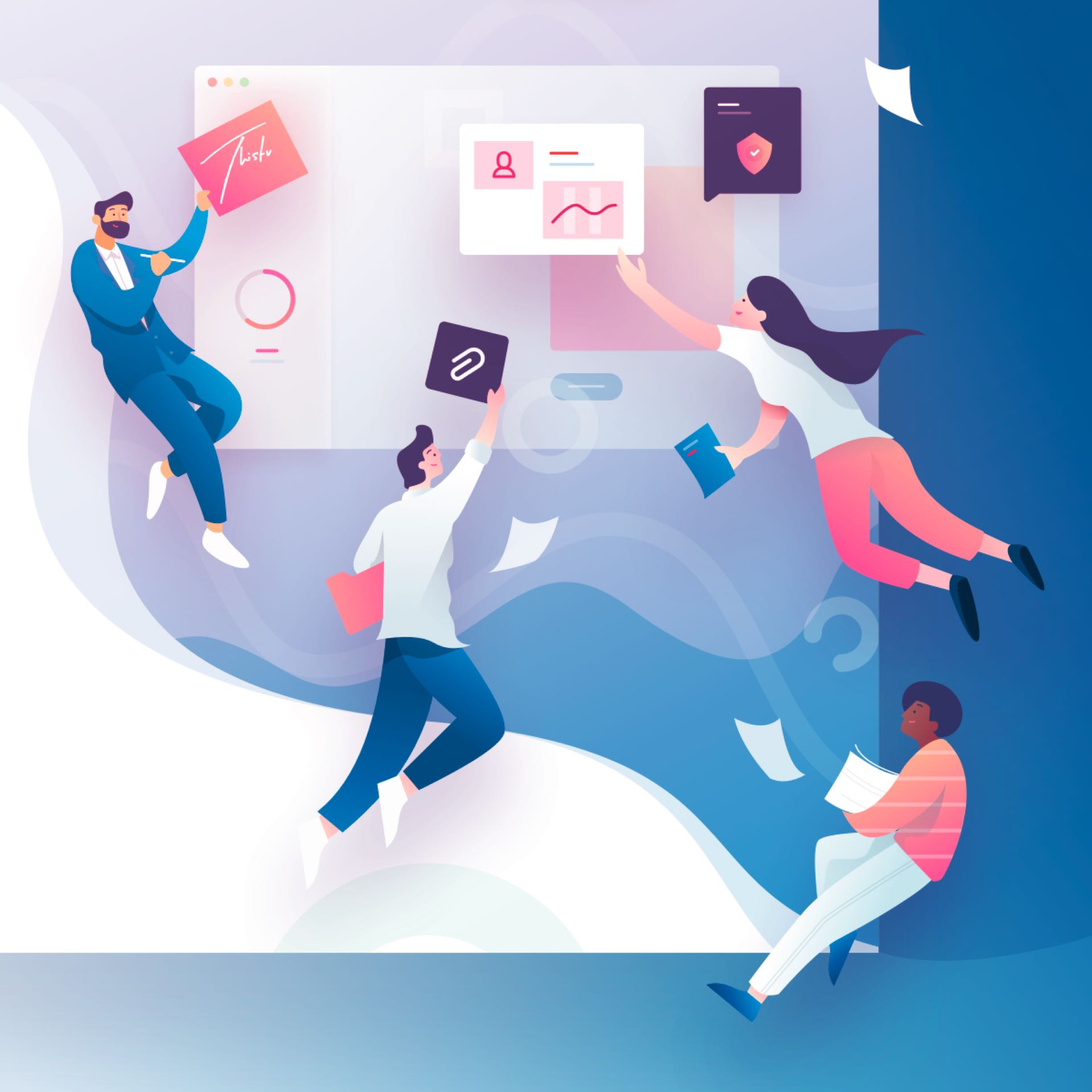 Drawn for an insurance company, this animation of a mom with a first-aid kit and a flashing red light exemplifies the mother’s job.