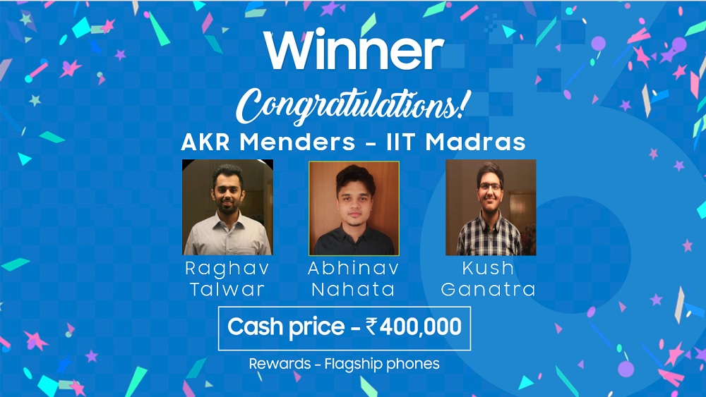 Raghav Talwar, Abhinav Nahata and Kush Ganatra of Team AKR Menders from IIT Madras took home the first prize. Their innovative solution to optimize each step of the user journey in the context of a Direct to Consumer (D2C) business using AI recommendation, AR/VR, IoT & QR Code integration impressed the jury the most and won them a cash prize of INR 400,000 and Samsung’s flagship smartphones.